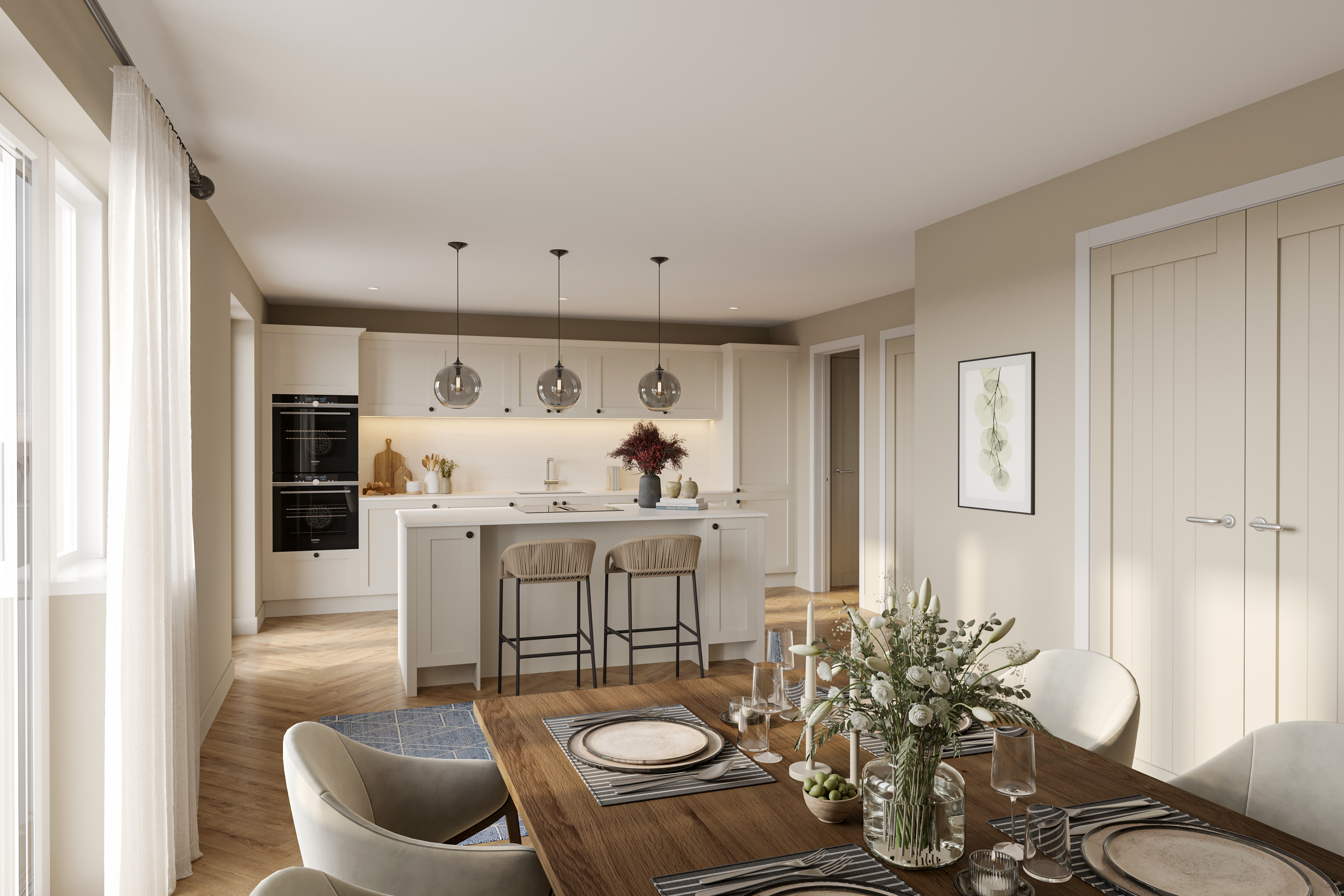 - Stylish open-plan kitchen with a central island and direct access to a dedicated dining area – ideal for entertaining.