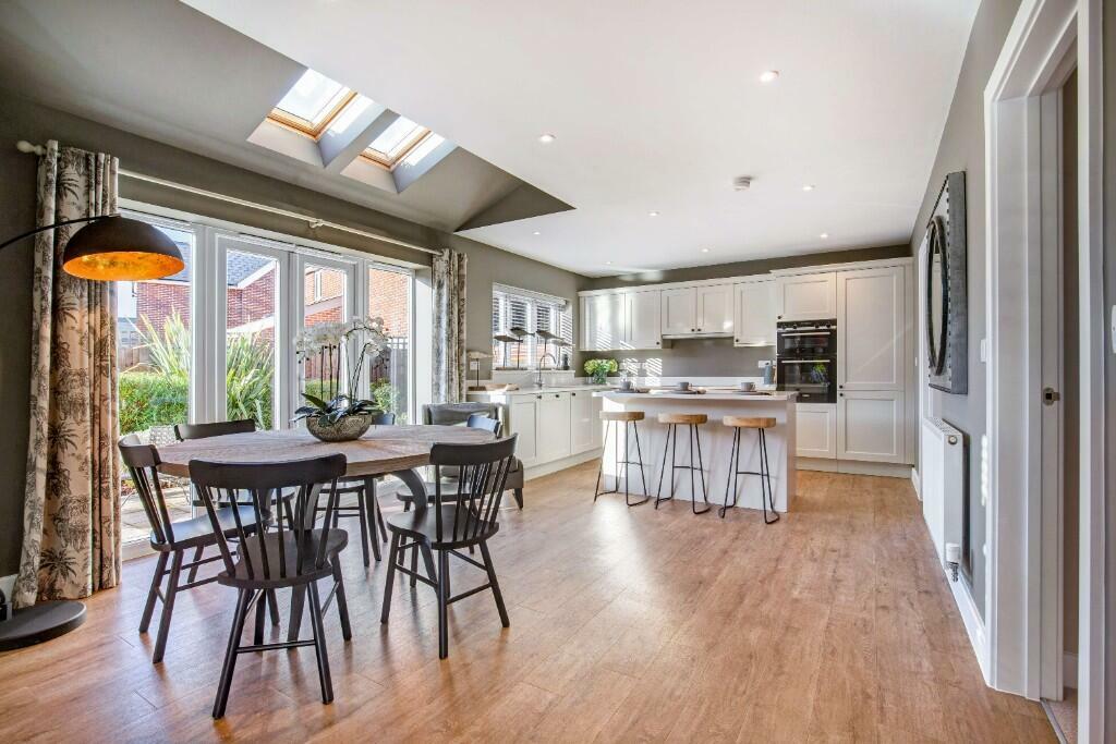 Enter through your front door to the hall with cottage style doors leading to the lounge with a beautiful bay window allowing plenty of natural light. The wood burner will come into its own for those special occasions. A spacious dining/family/kitchen, with separate utility, includes a vaulted ceiling and French doors through to the garden.